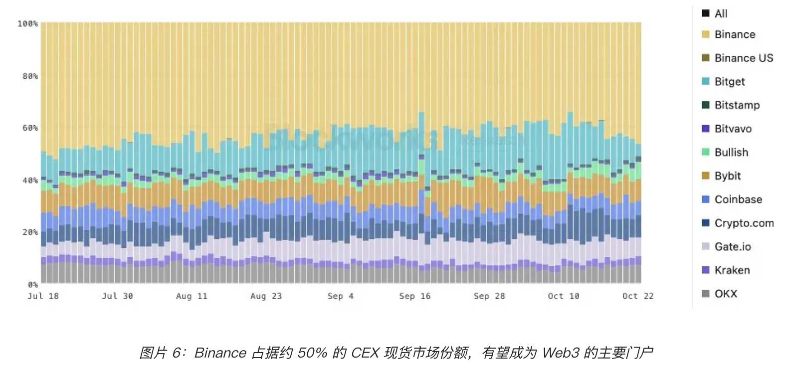 加密货币交易所的入口流量代表了 Web3 生态系统的战略制高点,是新用户进入数字资产生态系统的主要门户。据报道,币安的 CEX 占据了约 55% 的入口流量,成为大多数全球加密货币参与者的第一个接触点。处于这一流量中心的是 BNB,它历来将用户参与度转化为资产引擎——通过提供交易费折扣、早期 Launchpad 参与资格和生态系统奖励,将原始的入口流量转化为持续的流动性、网络效应和平台价值捕获。