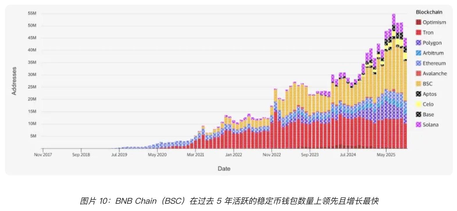 · 日活跃地址数排名第一 (10 月 13 日达到峰值 340 万)· 日 DEX 交易量排名第一 (约 190 亿美元/天,约占 61.25% 的市场份额)· 所有 L1 中活跃地址增长最快 (2025 年增长约 300%)· 活跃独立稳定币钱包地址数最多 (约 2000 万)